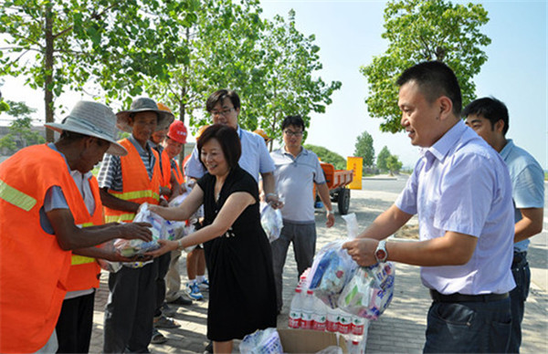 慰問中,丁琦對室外作業(yè)人員在高溫下堅持工作,為園區(qū)建設(shè)發(fā)展所付出的辛勤勞動表示感謝,并叮囑他們在工作中要做好防暑工作,注意身體狀況,避開午后高溫時段,更有效率地開展工作。