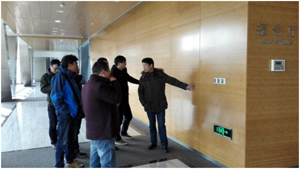 劉建華向考察人員詳細(xì)介紹了綠化工程、幕墻工程、木飾面裝修及吊頂工程等施工要點(diǎn),并結(jié)合公司部分代建項(xiàng)目,系統(tǒng)分析,指出不足。他表示,建筑技術(shù)發(fā)展日新月異,工程從業(yè)人員必須不斷加強(qiáng)學(xué)習(xí)、總結(jié)經(jīng)驗(yàn),才能不斷提高工程管理水平。