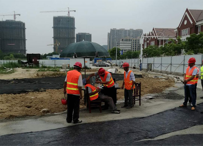近日,結(jié)合夏季高溫天氣狀況,開發(fā)公司在園區(qū)淀山湖路施工現(xiàn)場組織高溫中暑應(yīng)急演練。