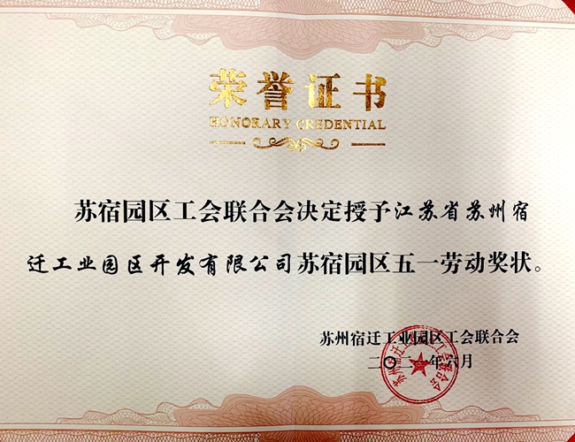 近日,開發(fā)公司榮獲“蘇宿園區(qū)五一勞動獎狀”,系園區(qū)首次表彰的五一勞動獎項。
