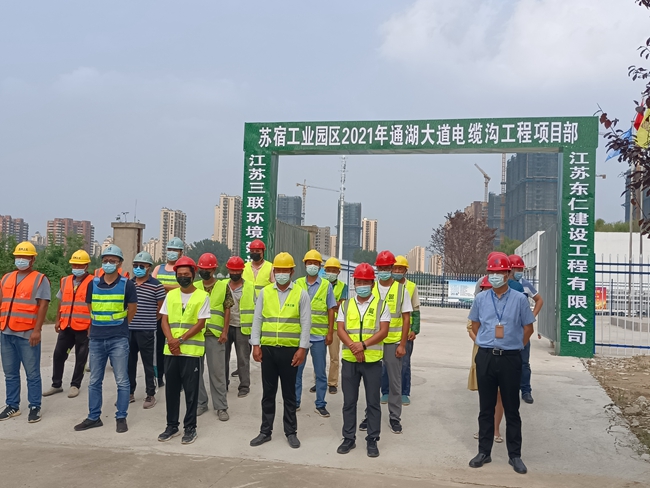 8月19日,開(kāi)發(fā)公司結(jié)合夏季高溫天氣狀況在園區(qū)通湖大道電纜溝項(xiàng)目部組織高溫中暑應(yīng)急演練。