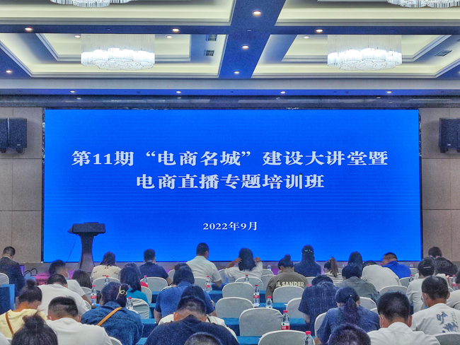 近日,由宿遷市商務(wù)局主辦的第 11 期“電商名城”建設(shè)大講堂暨電商直播專題培訓(xùn)活動(dòng)在泗洪開課。園區(qū)組織電商園四通科技、光速傳媒等五家企業(yè)十余人參加了培訓(xùn)。