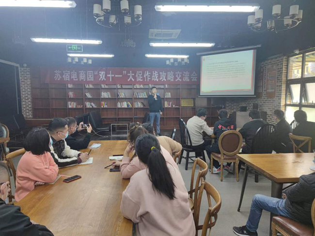 2022年"雙十一"已進入倒計時,蘇宿電商園品牌商家紛紛摩拳擦掌,迎接這一全年最大爆發(fā)場。正值“雙十一”蓄水期,蘇宿電子商務(wù)產(chǎn)業(yè)園提前組織各商家進行大促作戰(zhàn)攻略交流會。