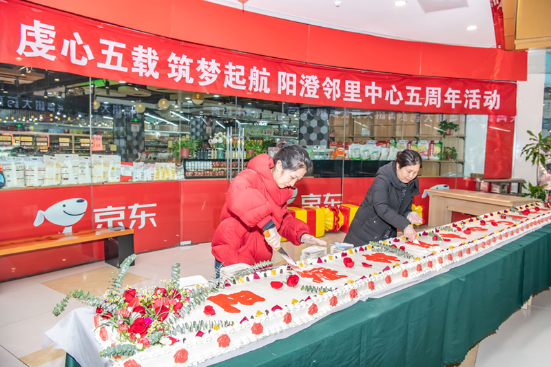 為感恩廣大新老客戶和商戶,1月18日,公司開展陽澄鄰里中心五周年巨型蛋糕免費(fèi)品嘗活動,不到2小時,6米巨型蛋糕就被分享完畢,領(lǐng)到蛋糕的家人和顧客朋友們都洋溢著滿滿的開心和幸福。