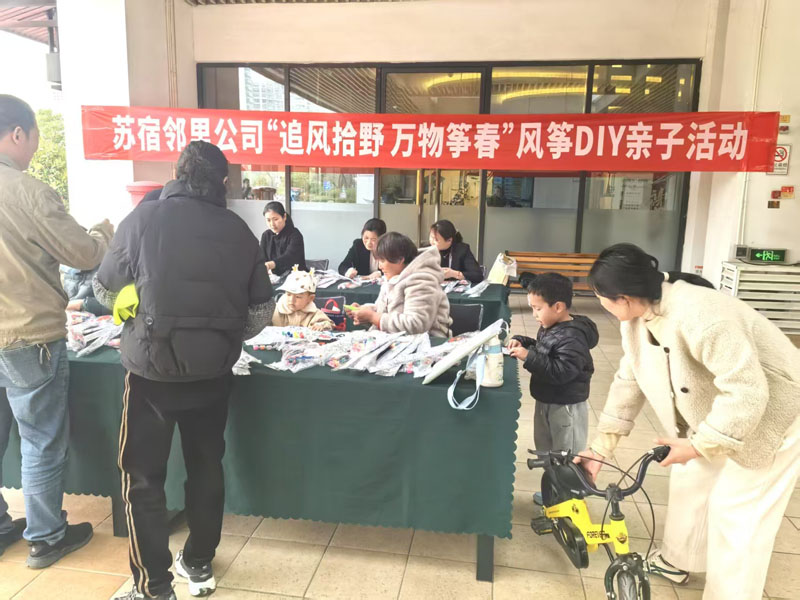 為豐富鄰里中心文化生活,3月28日,蘇宿鄰里公司在明日鄰里中心開展“追風拾野 萬物箏春”手繪風箏親子活動。