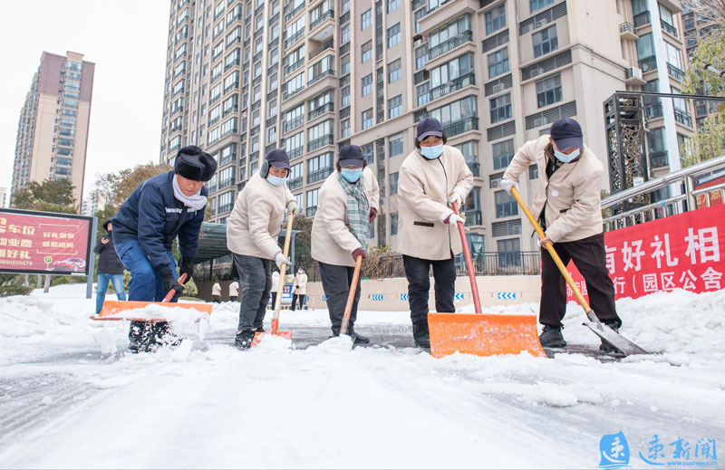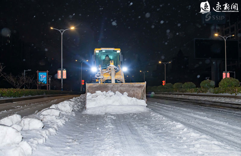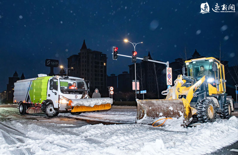 2月21日凌晨,蘇宿工業(yè)園區(qū)各部門迅速行動,組織人員、機械連夜進行除雪作業(yè),齊力保障市民出行安全。