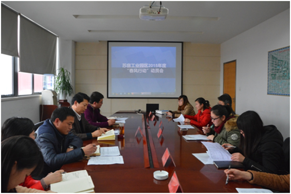 為搶抓春節(jié)招聘良機,服務好園區(qū)企業(yè)用工,2月15日下午,園區(qū)召開2015年度“春風行動”推進會,可成、長電、天御、蘇瓷等7家園區(qū)重點用工企業(yè)參加了會議。
