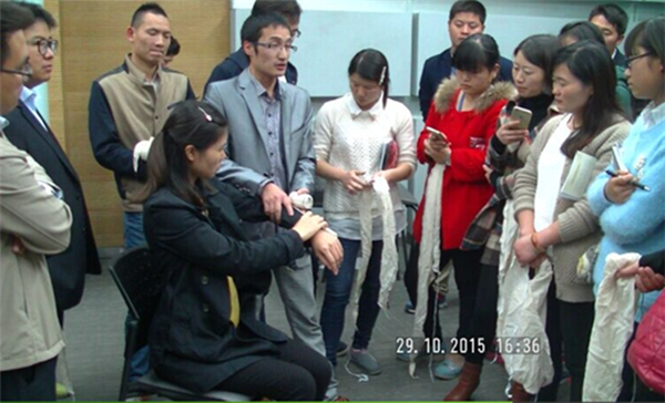 理論課上,講師們詳細生動地介紹了應急救護的基本知識,講述止血、包扎、固定和搬運等四方面內(nèi)容。實訓課上,參訓者饒有興致地進行一對一實際操作,講師們現(xiàn)場進行指點。