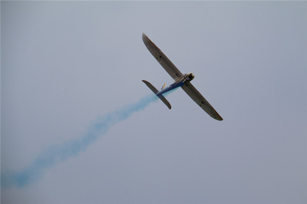 頭頂藍(lán)天白云,腳踩綠蔭草地,伴著音樂,聽著講解,宿蘇外的學(xué)子以及家長們滿臉的喜悅,他們仰望著一架架航空飛機(jī)模型飛上天空,不時(shí)發(fā)出“啊……啊……”的驚呼聲。
