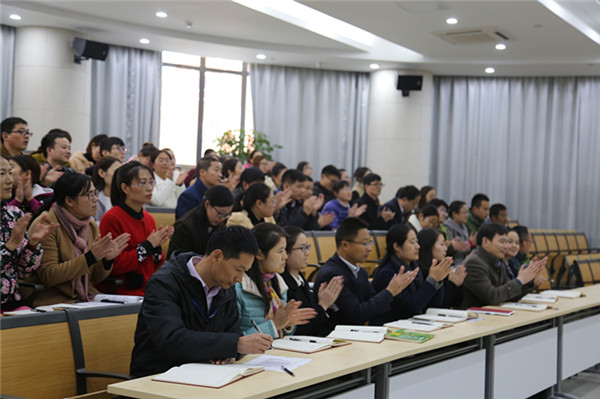 駱敏從“做教師的意義、如何成為學生心目中的好老師和如何成為大家心中的好老師”三個方面給老師們上了一堂別開生面的專業(yè)發(fā)展課。駱敏指出,教師應該具有高尚奉獻、完善自我的意識,特別要從細節(jié)方面、從學生的角度思考,開啟通向優(yōu)秀教師的通道。駱敏認為學生心目中的好老師應該是一名演說家、幽默大師,具有獨特的教學藝術,對孩子能夠真誠贊美、懂得尊重學生、真心關愛學生。作為好老師,應該修德、修志、修學、修能、修性,有欣賞的眼光,感恩的心態(tài)。